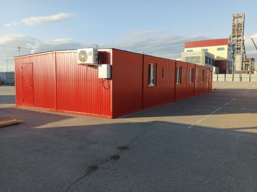 Модульное здание для обслуживания сотрудников и выдача инструментов.Местонахождение: Республика Башкортостан дер.ПетропавловскийРазмер: 28 020 х 6 440 х 2 700 (ДхШхВ)Срок выполнения: 40 рабочих дней